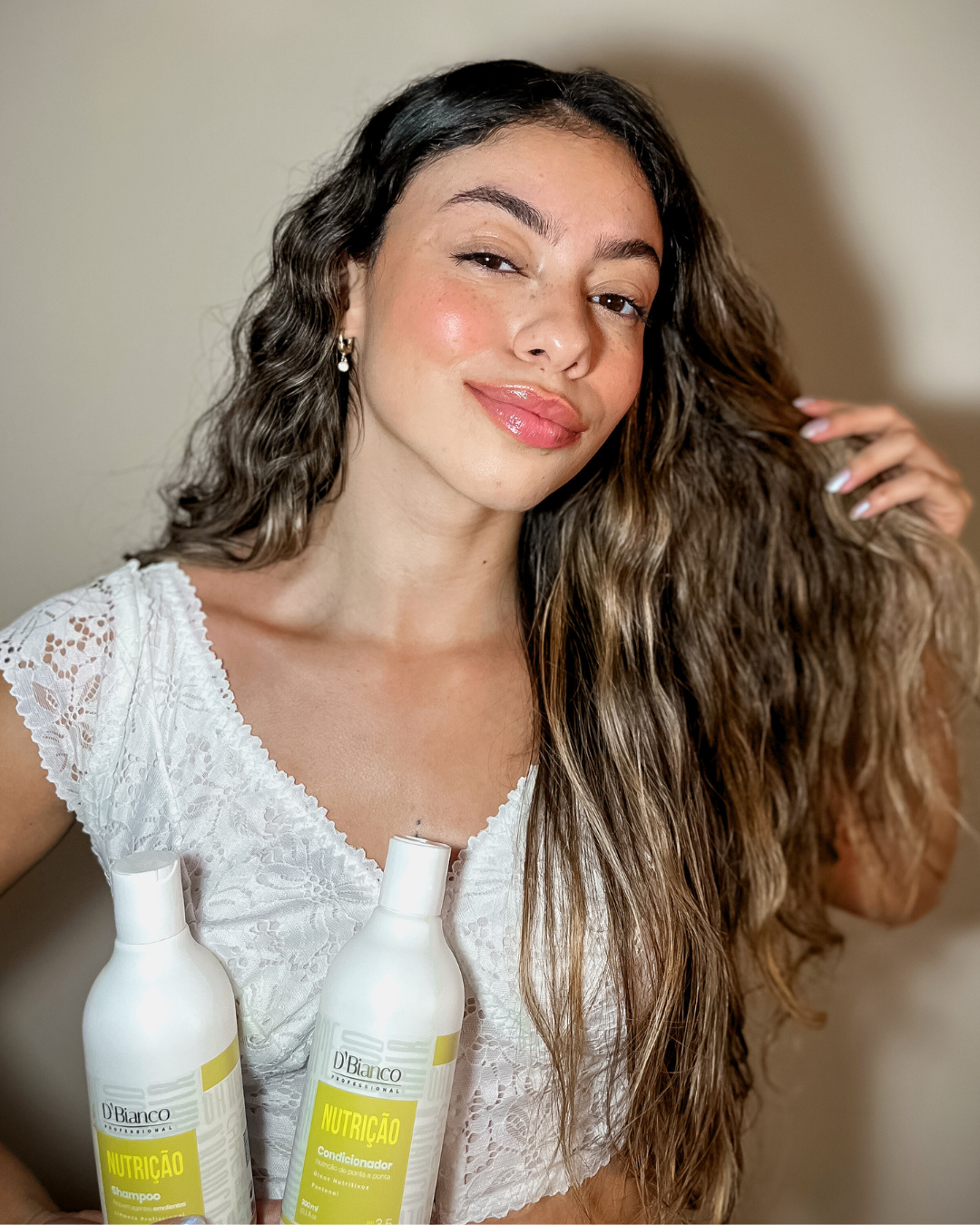 O Kit D’Bianco Nutrição reúne shampoo, condicionador e máscara para restaurar o equilíbrio lipídico dos fios e proporcionar nutrição completa com resultado de salão.