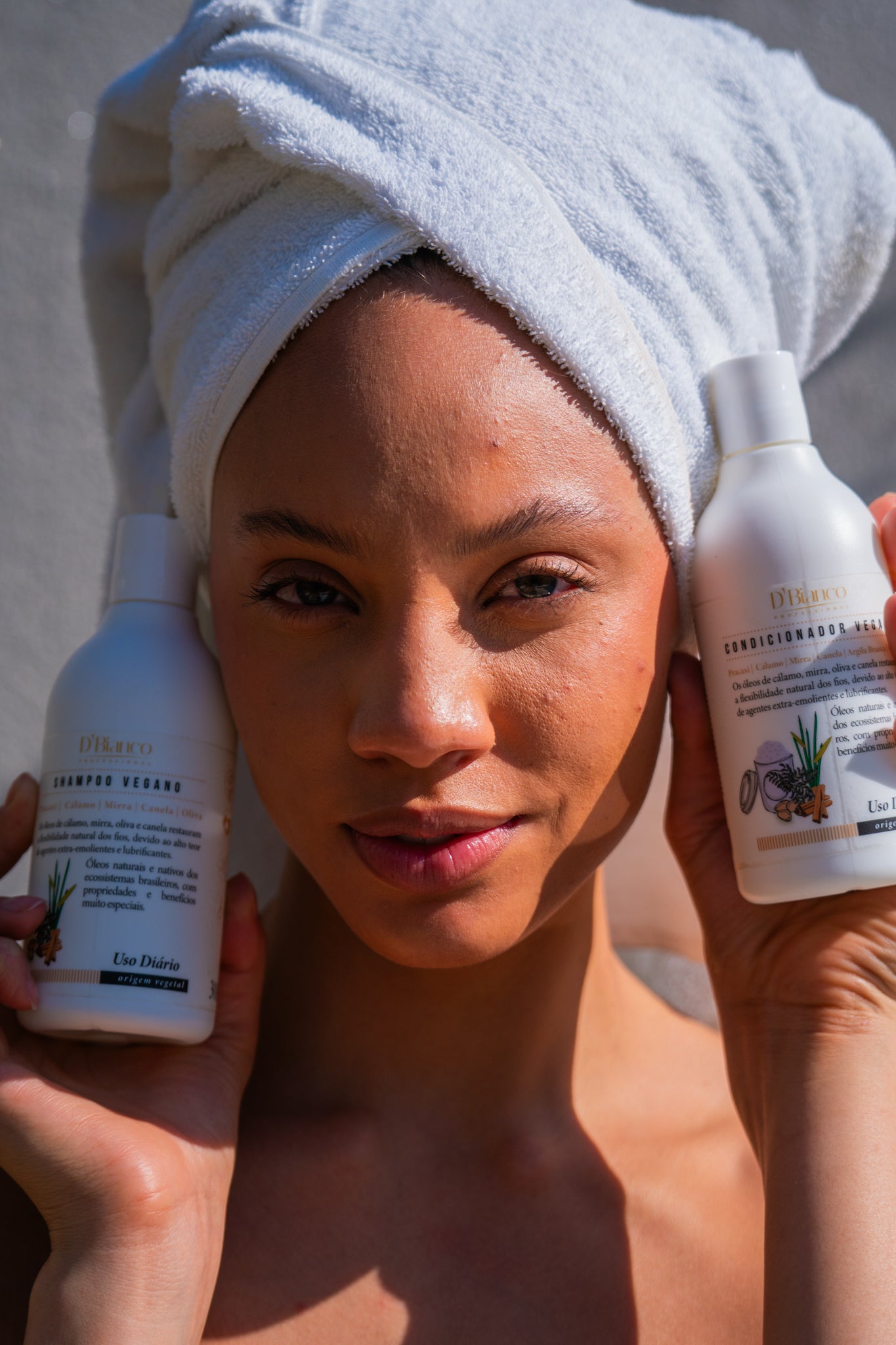 O Kit Vegan D’Bianco (Shampoo + Condicionador) foi desenvolvido para quem busca cabelos saudáveis com uma rotina mais consciente e sustentável.